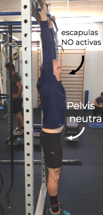 | Ayudarte de balanceos o impulsos del cuerpo o piernas. | Mantén la posición de hollow con el abdomen y glúteo activos. Centrarte en traccionar con el dorsal. |